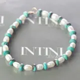 Een elegante vleugje glamour binnen handbereik. Laat u verleiden door een chique en jeugdige stijl. Turkoois werd geassocieerd met verbindingen met de spirituele wereld, psychische gevoeligheid en bescherming tegen schade en negatieve energie. Parels spreken van de zuiverheid en integriteit van de drager.