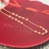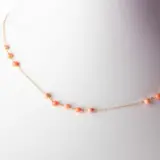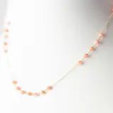 Prachtige halsketting met zuiver roze natuurlijke koraalbollen, voor een heldere charme van uniciteit. Lichtgevend juweel met natuurlijke kostbare sieraden op elegante 18 karaat geelgouden zetting.