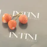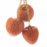 Verbazingwekkende en zoete mediterrane aardbei koraal hanger. Natuurlijke uit koraal gesneden edelstenen, vastgehouden door twee 18-karaats geelgouden kettingen die doen denken aan het Italiaanse handgemaakte traditionele sieradenwerk.