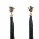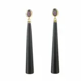 In de werkplaats van Intini Jewels werd een prachtig meesterwerk met een uitstekende weergave van kleur en vakmanschap van hoge kwaliteit geboren. Prachtige oorbellen met robijnen en zwarte agaatdruppels, vastgehouden door delicate 18-karaats geelgouden details.