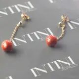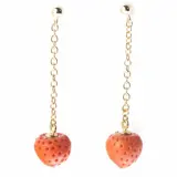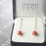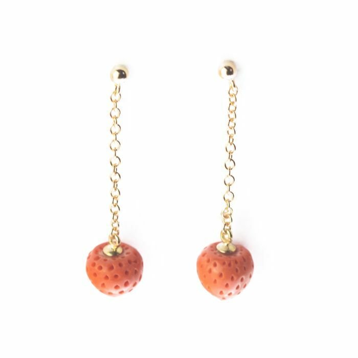 Verbazingwekkende en zoete mediterrane aardbeien appel koraal oorbellen. Natuurlijke koraal gesneden edelstenen vastgehouden door twee 18 karaats geelgouden kettingen die doen denken aan het Italiaanse handgemaakte traditionele sieradenwerk. Oorknopjes met een subtiele beweging voor een perfecte cocktailgelegenheid.