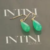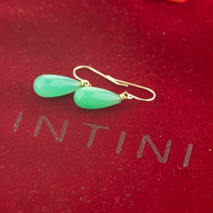 Dromerige doorschijnende groene 5 karaat chrysophrase peer briolette oorbellen, verfraaid met 18 karaat geelgoud in een unieke druppelvormige traan-peervorm. Laat je verrassen door Intini Jewels, ons traditionele handgemaakte Milanese merk, met modieuze accessoires en laat al je sieradendromen uitkomen!
