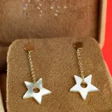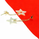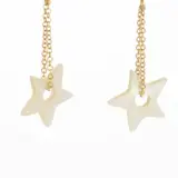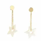 Bungelende stervormige oorbellen van natuurlijk parelmoer met een cirkelgat aan de binnenkant, vastgehouden door 18 karaats geelgoud. Eigentijds en uniek stuk ontworpen met een moderne en jeugdige stijl.