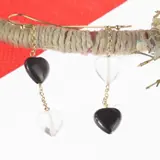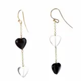 Deze prachtige handgemaakte oorhangers zijn samengesteld uit de meest edelstenen. Een paar hartvormig bergkristal en een paar zwarte agaat die de illusie wekken van de asymmetrische en moderne look. Open je intuïtie en verbeter je zintuigen om liefde te vinden.