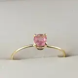 Signature INTINI Jewels roze toermalijn sieraden. Modern en elegant ringontwerp in 18k geelgoud met een briljant geslepen ring met kleine griffioenen op de ring.