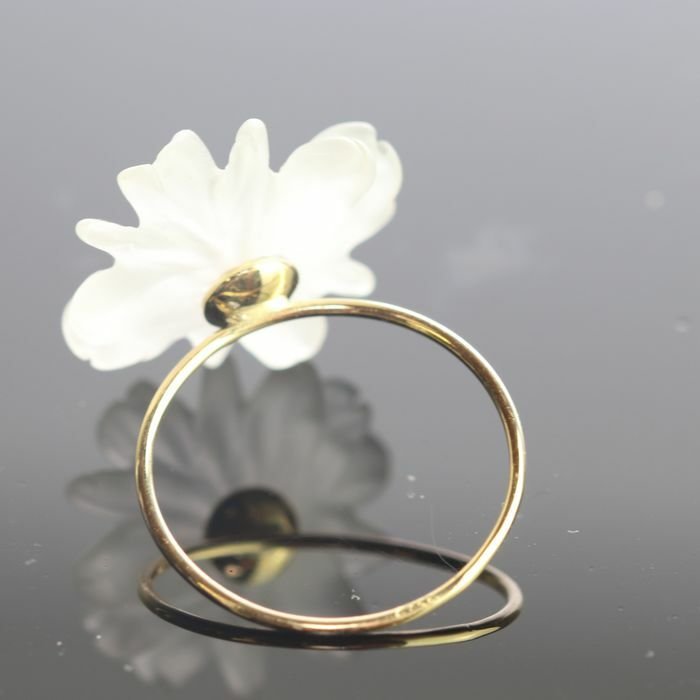 Verbazingwekkende en delicate bloemring van 6,5 kt bergkristal. Gesneden bloemblaadjes die doen denken aan het Italiaanse handgemaakte traditionele sieradenwerk, zichzelf omhullend in een zachte look verrijkt met 18-karaats geelgoud dat glamour en exquise smaak uitstraalt.