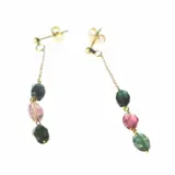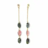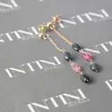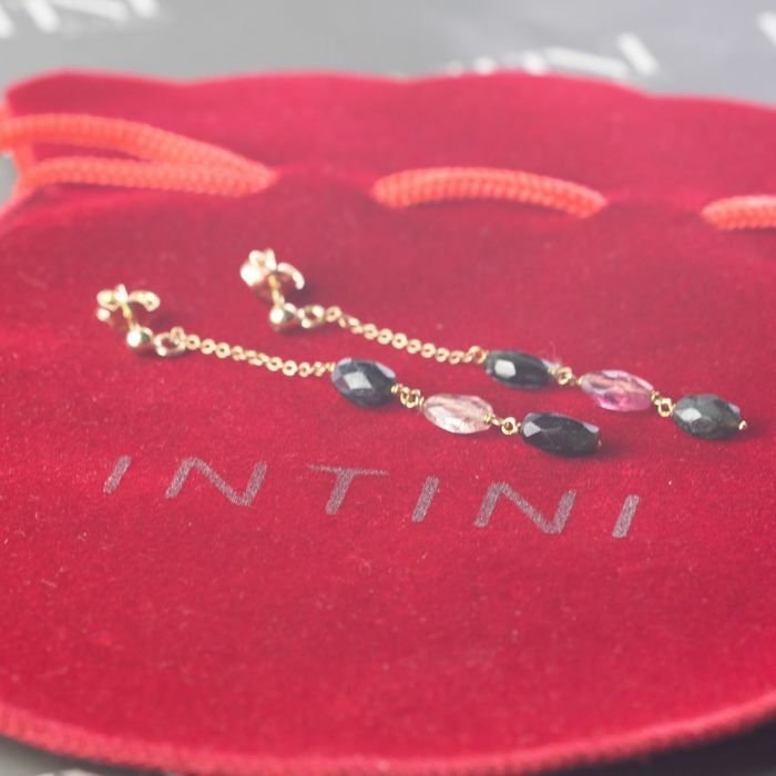 Intini Jewels kenmerkende kwaliteit op een modern en eigentijds designjuweel. Prachtige oorbellen met drie toermalijn ovaal geslepen. Drie verschillende kleuren die in elkaar versmelten en mooie verloopkleuren laten zien. Verfraaid met een 18 karaat geelgouden ketting zal je er mooi en vol charme uit laten zien