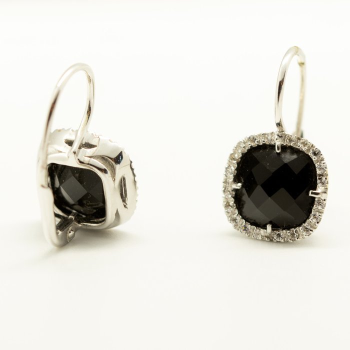 Vintage clip-on stijl oorbellen gekenmerkt door een prachtig zwart vierkant kussen onyx subtiel omringd door 0,9 karaat diamanten. De prachtige edelstenen zijn gezet in 18 karaat witgouden oorclips voor een uitzonderlijke prijs. Zwart en wit zijn de kleuren van licht, zuiverheid en mysterie. Ontdek onze extreem luxe collectie.