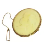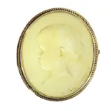 This late Victorian to early Art Nouveau brooch shows an ivory cameo of unusually fine quality. The low relief is carved with crisp definition, yet carries the gentle, dreamy mood so typical of early twentieth-century portrait work. Set in warm gold and signed “A. v. Dongen”, it offers the quiet pleasure of studying craftsmanship where every delicate curve rewards a closer look.