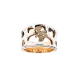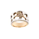 Bandring in 18 kt (750/1000) roségoud met het bovenste gedeelte in witgoud met hartvormige bloemen en klein meisje verfraaid met 15 natuurlijke briljant geslepen diamanten van elk 0,01 ct, in totaal 0,15 ct, F-G kleur en VS-zuiverheid.
