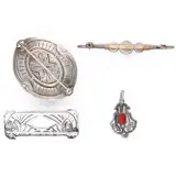Afmeting broches: ca. 47 x 38 mm., ca. 47 x 17 mm., ca. 61 x 9 mm.
