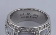 MAUBOUSSIN 18kt gouden ring met parelmoer en 56 briljant geslepen diamanten x totaal 0.30ct. parelmoer x ongeveer 1,05 karaat. doos en garantie, factuur uitgegeven door de fabrikant. gegoten nummer 11, de ring weegt 11,63 gram. Verzekerde verzending met tracking