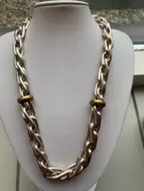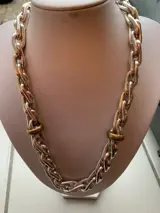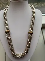 Bijzonder mooi zwaar zilveren collier Mexico met mooie schakels . Aan het collier zitten 2 ringen goud 14 CT. Getoetst,