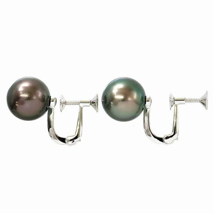 Titel:MIKIMOTO Zwart South Sea parel 11.5mm Oorbellen Clip op 18K WG 750 90179364