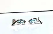 blauwe kleur en uitstekende transparantie en marquise geslepen voor een totaal van 6,00 karaat plus 2 diamanten kleur F VVS zuiverheid rond briljant geslepen enkele karaat 0,01 en totaal 0,02