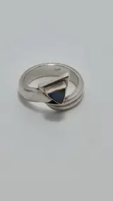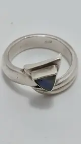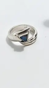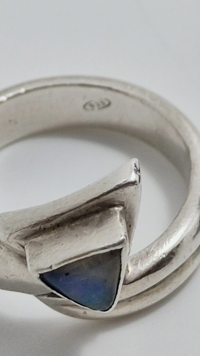 Spectaculaire volledig handgemaakte modernistische ring met maansteen driehoekige cabochon.