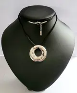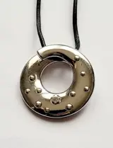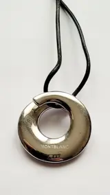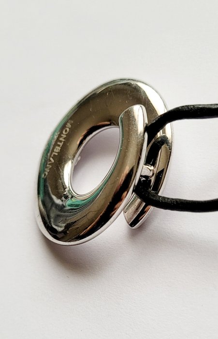 Montblanc damescollier en hanger van massief 925 zilver en zwart leren koord met massief 925 zilveren sluiting