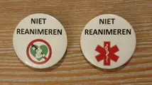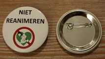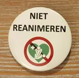 1. Button met tekst ''niet reanimeren'' en een rood medisch teken