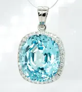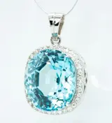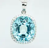 Een fijne 18kt witgouden hanger, met een zeldzame grote blauwe aquamarijn van 45,08 ct!