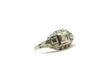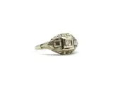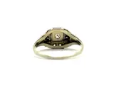 Geometrische bezel bezet met een oud geslepen diamant van 0,05 karaat in een entourage van roosgeslepen diamanten