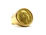 Ring in 18 karaat roze goud bezet met een Britse munt van een halve soeverein in goud 916/1000 (22 karaat) met een gewicht van ongeveer 3,99 g