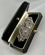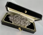 Exquise Art Deco sterling zilveren duttee jurk clip broche met Marcasiet stenen, daterend rond 1930.