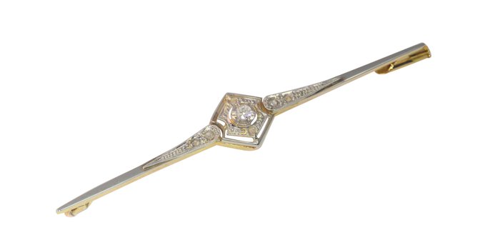 Type juweel: Vintage Franse jaren 1920 Art Deco broche met diamanten staaf