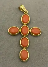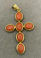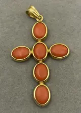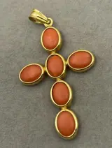 18kt geelgouden hanger met cabochon geslepen koralen.