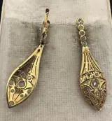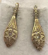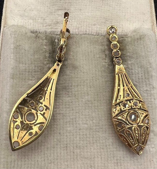 Antieke 18kt geelgouden oorbellen met roosgeslepen diamanten.