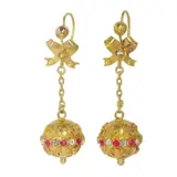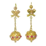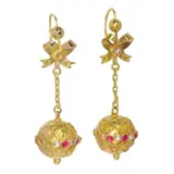 Type juweel: Vintage antieke 18K gouden lange hangende oorbellen met rode en witte stenen
