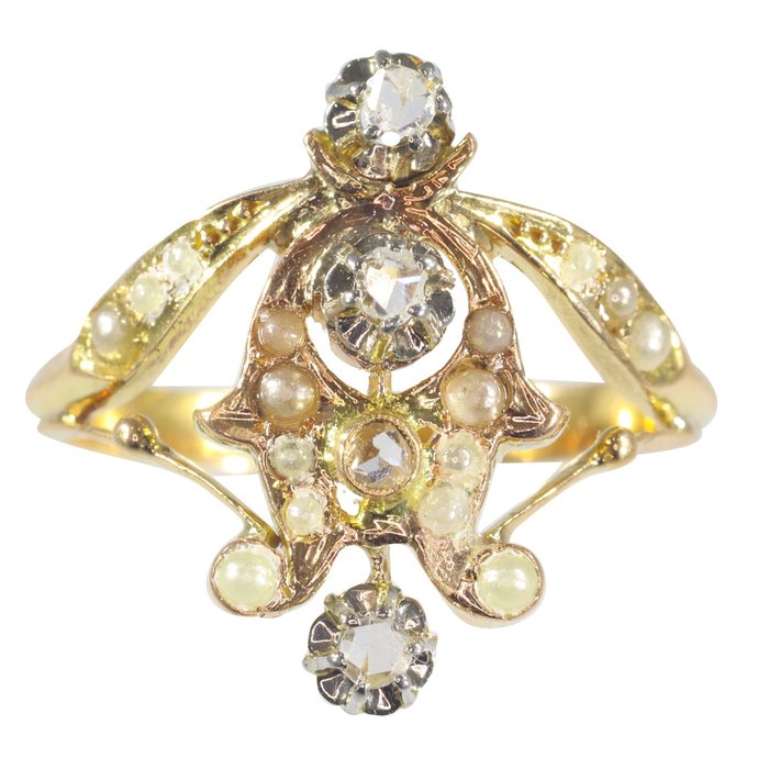 Type juweel: Vintage ring met diamant en parel