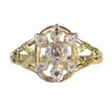 Diamant(en): Zeven senaille diamanten, getest en gegarandeerd natuurlijke diamanten. Een senaille is een vereenvoudigde roosgeslepen diamant, een kleine diamantchip met misschien een paar gepolijste facetten. We hebben niet het gewicht van deze diamanten, wat normaal is in onze handel als het gaat om senailles.