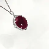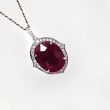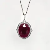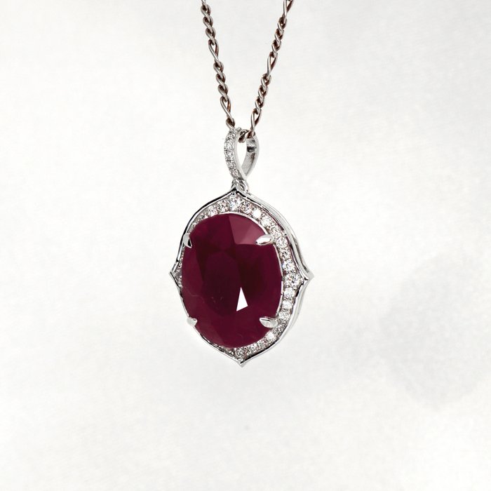 De IGI-gecertificeerde natuurlijke onverwarmde robijn met een gewicht van 7,98 ct bezet met natuurlijke FG VS-diamanten met een gewicht van 0,35 ct op de 14K witgouden band maakt de hanger erg klassiek en mooi.