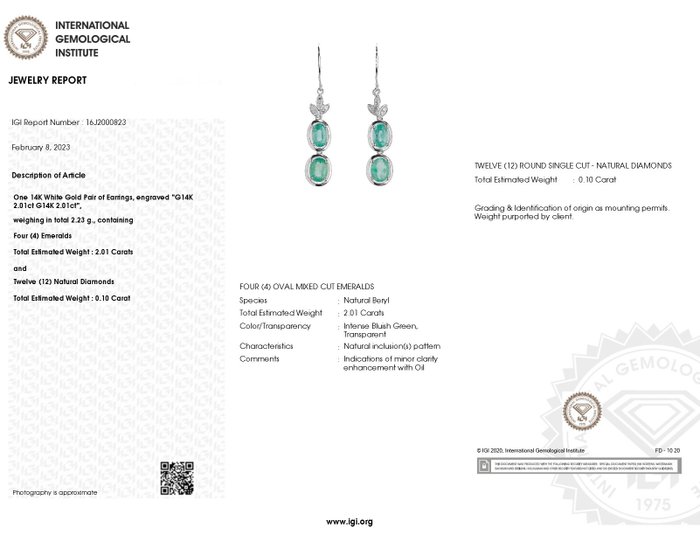 1. IGI-gecertificeerd rapport voor Emerald Diamond en goud