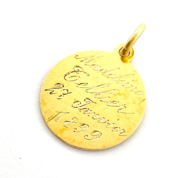 Keerzijde gegraveerd "Madeleine Cellier, 27 januari 1899"
