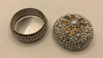 OPBERGDOOSJE KLEIN LUXE ZILVER WIT GOUD DECO LOOK rond 4,5 CM nieuw