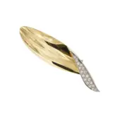 Prestigieuze bladvormige broche in 18 kt (750/1000) geelgoud verfraaid met diamanten op witgoud. Merk: Pomellato, gemaakt in Italië.