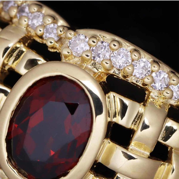 Titel:Ponte Vecchio Granaat Diamant 0.35ct Ring 18K YG 750 Maat7.25(US) 90156002
