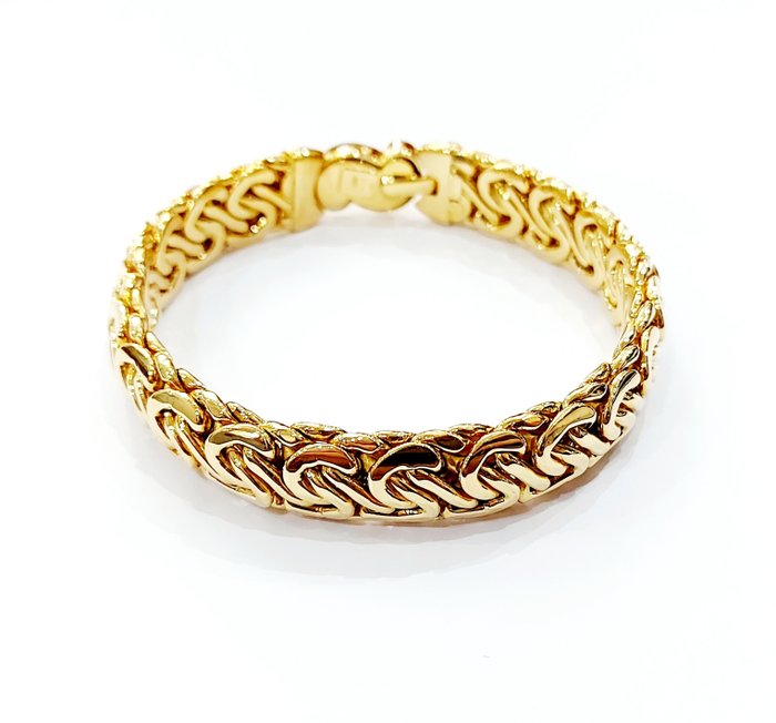 Flexibele damesarmband met stevige zetting en verborgen sluiting van 18 kt geelgoud, gesigneerd door juwelier 'Sadufa' - 35,82 g - 19 cm.