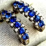 Fijne 1,85 ct natuurlijke blauwe saffieren en accentdiamanten 14kt gouden oorknopjes