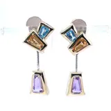 • 2 blauwe topaas in trapeziumvorm van ca. L 5,70 x B 3,45 - 4,30 x H 2,65 = ca. 1,00 Ct.T