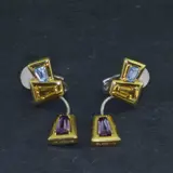 • 2 Amethist in trapeziumvorm van c. L 8,70 x B 2,80 - 5,10 x H 3,25 = ca. 1,60 ct.T