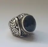 spettacolare anello intarsiato a mano con grande pietra onice - 925 Zilver - Ring Onyx