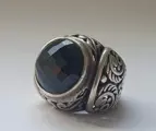 zilveren heren ring bezet met een belangrijke ronde gefacetteerde onyx steen.