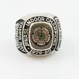Een vintage voetbal ring uit de USA, ter gelegenheid van de winst van een indoor kampioenschap van de Tampa Rowdies. Dit is een voetbalclub uit Florida, Tampa Bay. In het seizoen 1979-80 was de team captain Jan van der Veen, wiens naam we ook op de ring terugzien.