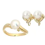 Titel:TASAKI Akoya Parel 7.1-8.0mm Diamant 0.04ct Ring Oorbellen Set 18K YG 90179419