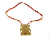 In the realm of ancient treasures, the discovery and presentation of this pre-Columbian artifact, dated around 400 CE, is infused with a profound sense of exhilaration. With meticulous research through libraries, museum collections, and auctions, the narrative of this gold bird pendant with human-esque features unfolds. It carries the soul of an era where gold was celestial, and shamans bridged worlds, with carnelian beads perhaps whispering tales of Middle Eastern origins. Its survival in such pristine condition is nearly miraculous, a silent testament to the sacred artistry of a time when jewels were potent talismans.