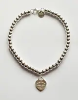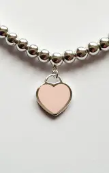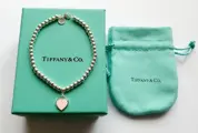 Tiffany & Co damesarmband van massief 925 zilver met kralen, mini-hartlabel in het midden, de achterkant is zuurstokroze en de voorkant is gemarkeerd met "Please return to Tiffany".
