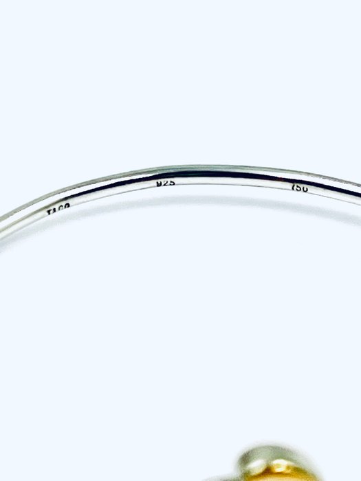Tiffany & Co Sterling Zilveren Armband met prachtige 18K goud twee hartjes.