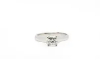 Mooie Tiffany solitaire ring gemaakt van platina met 0.74 karaat van een Lucida geslepen diamant. Deze ring wordt geleverd met een Tiffany & Co.-certificaat voor de hoofdsteen en vergezeld van een mooie doos.